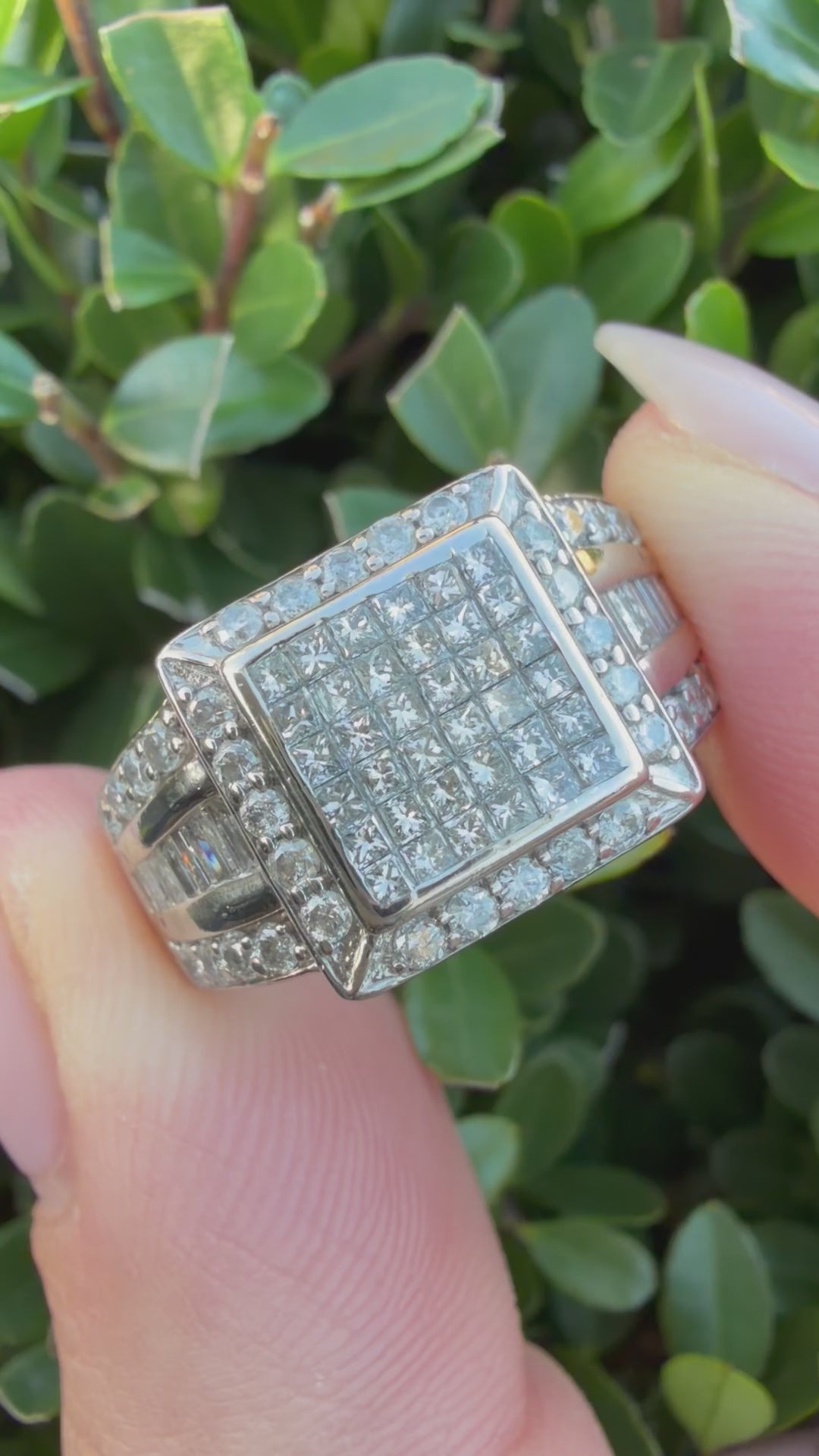 18k White Gold 0.25ct Natural Princess Cut Diamond Cluster Ring certified