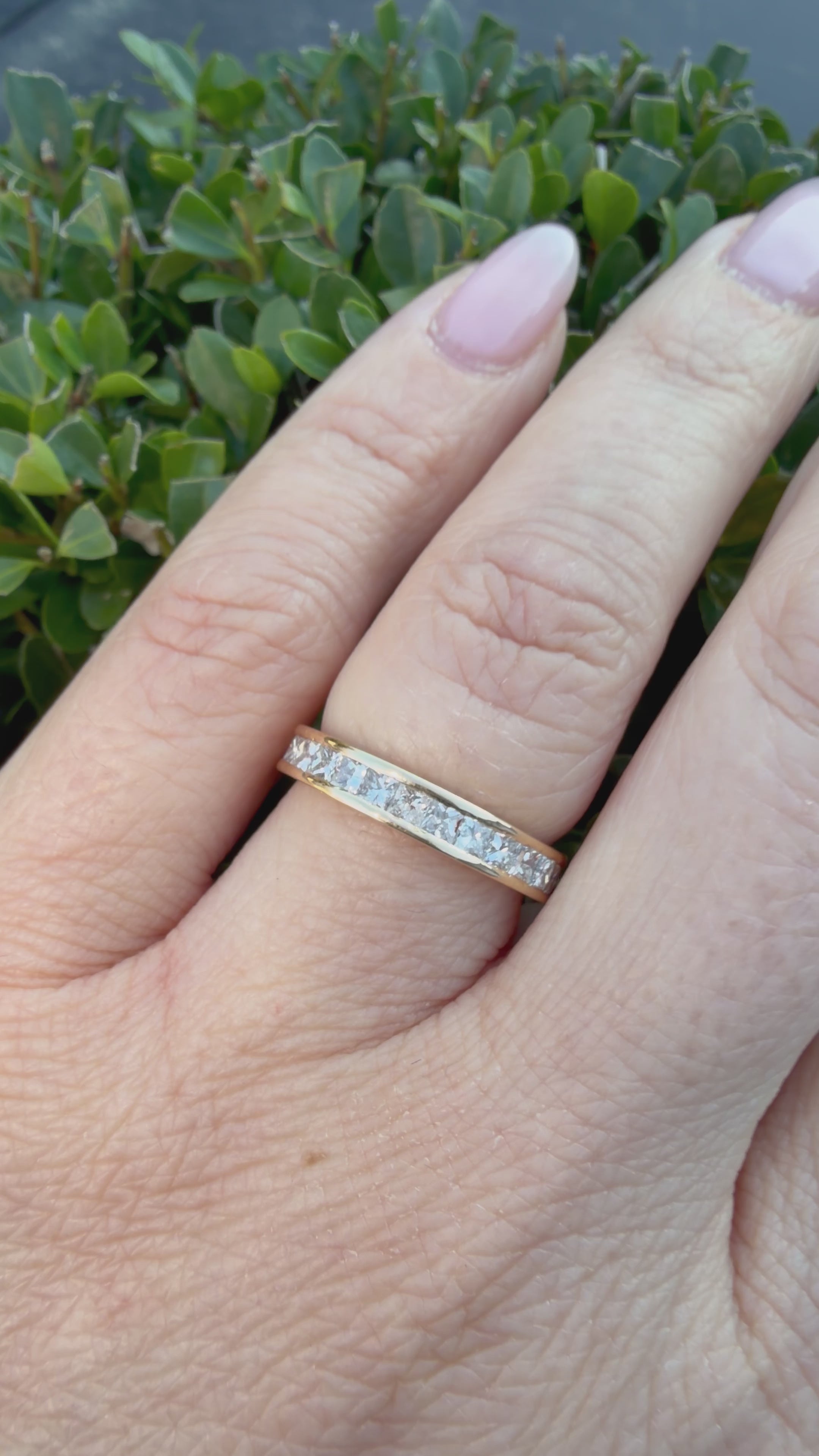 18k yellow Gold 1.40ct natural Princess Cut diamond full eternity ring certified