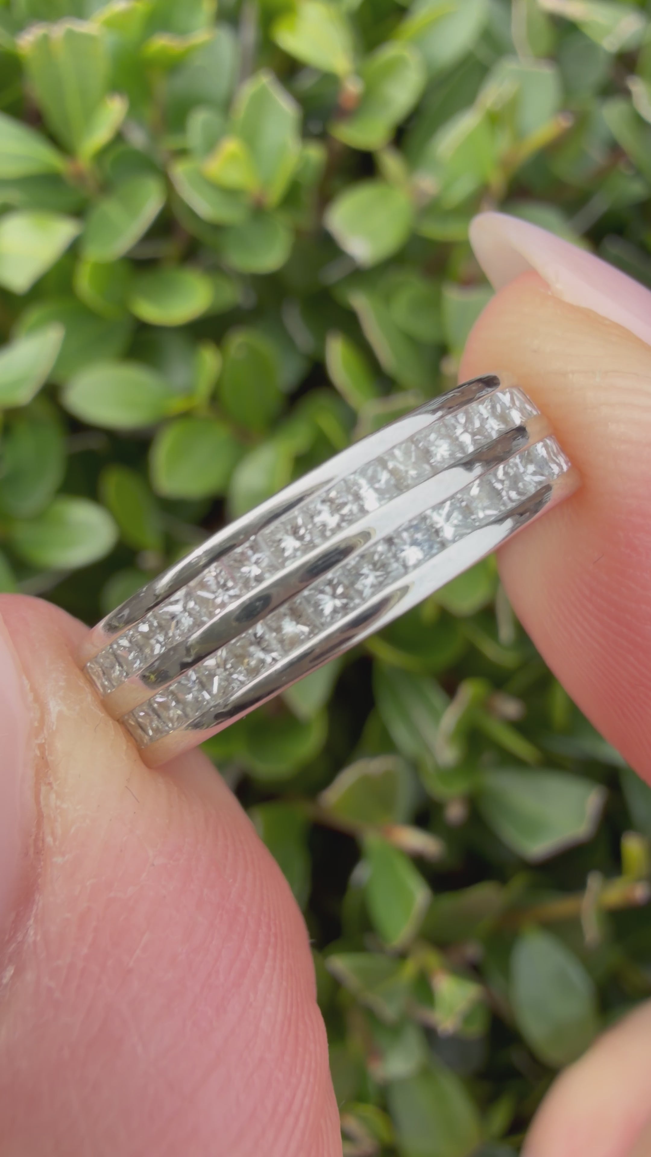 9k White Gold 1.20ct natural Princess Cut diamond full eternity ring certified