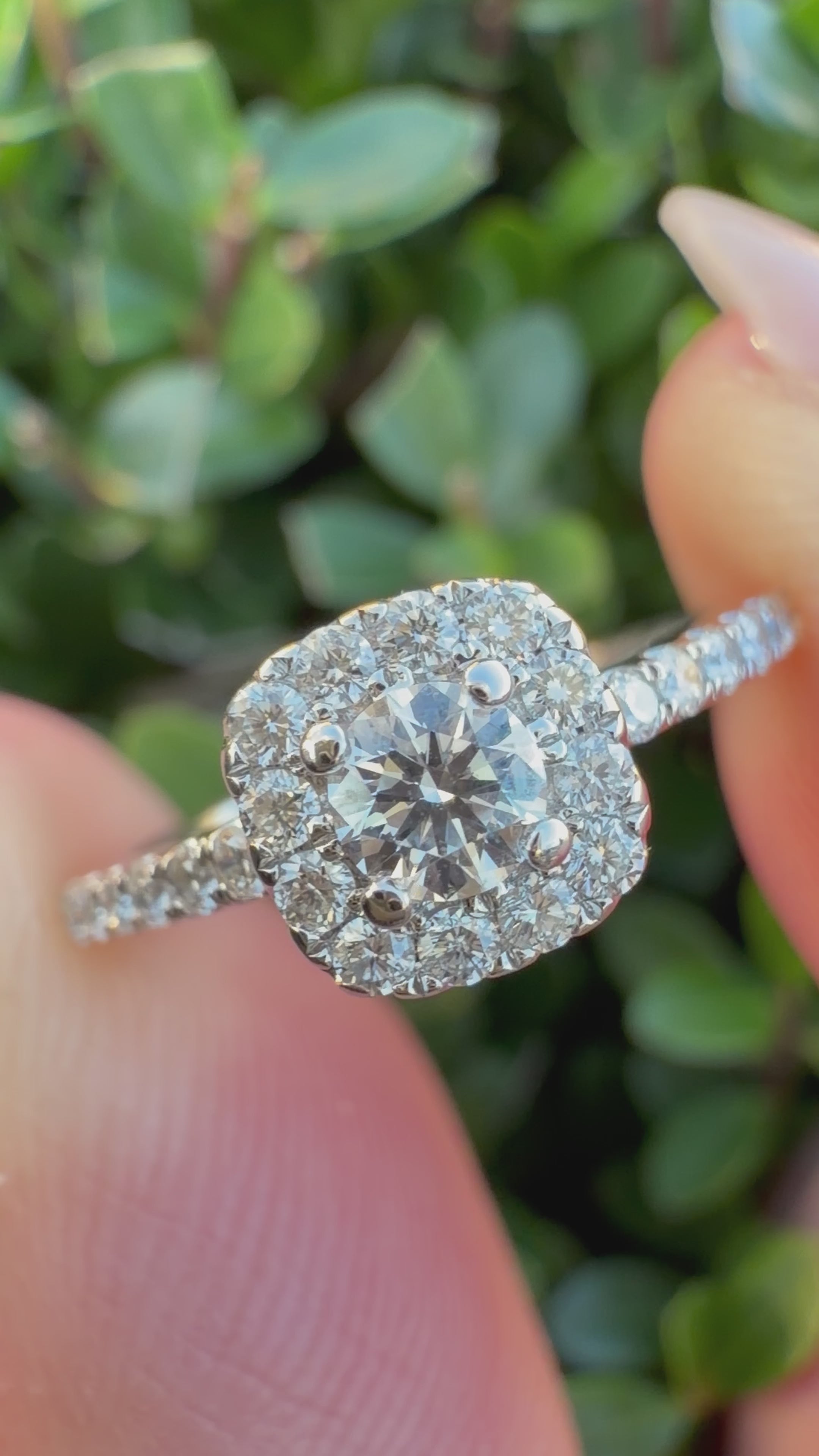 14k White Gold 0.37ct Natural Round Cut Diamond Halo Ring certified
