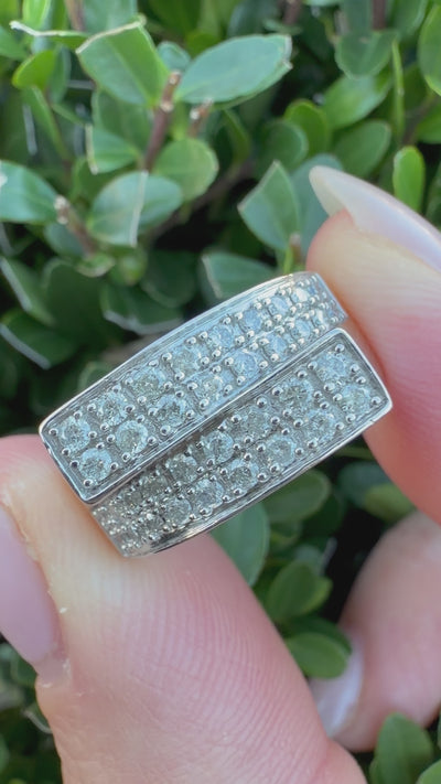 14k White Gold 0.55ct Natural Round Cut Diamond Two Row Ring certified