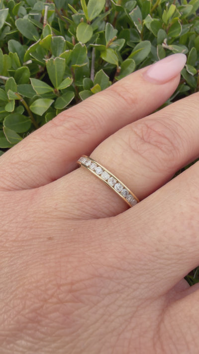 This beautiful full eternity ring features thirty natural round brilliant cut diamonds, perfectly set all the way around the band to create a continuous circle of brilliance and sparkle.