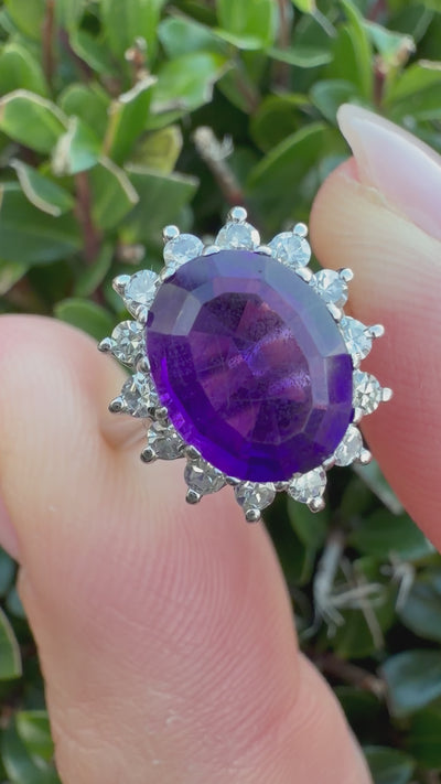 18k white gold amethyst and natural diamond ring certified