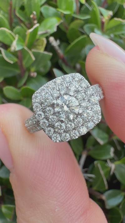 18k White Gold 1.00ct Natural Round Cut Diamond Halo Ring certified