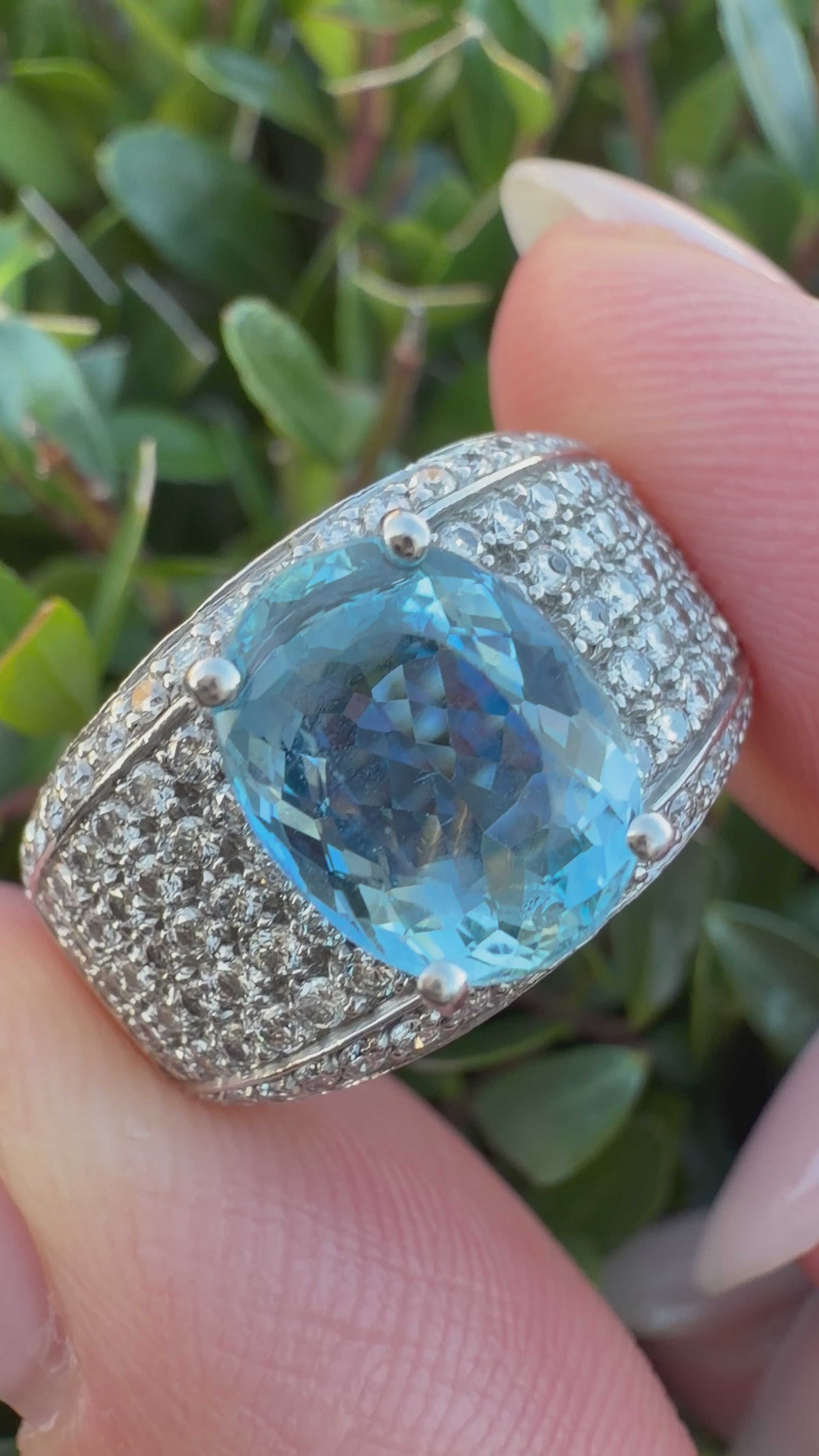 18k White Gold 2.05Ct Natural Aquamarine And 2.00ct Natural Diamond Ring certified