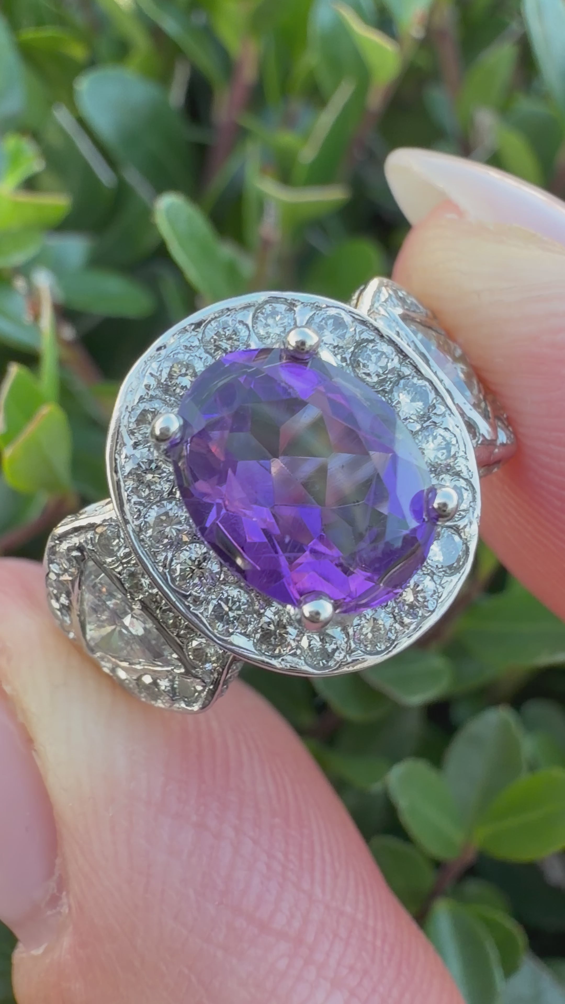 18k white gold amethyst and 1.30ct natural diamond ring certified