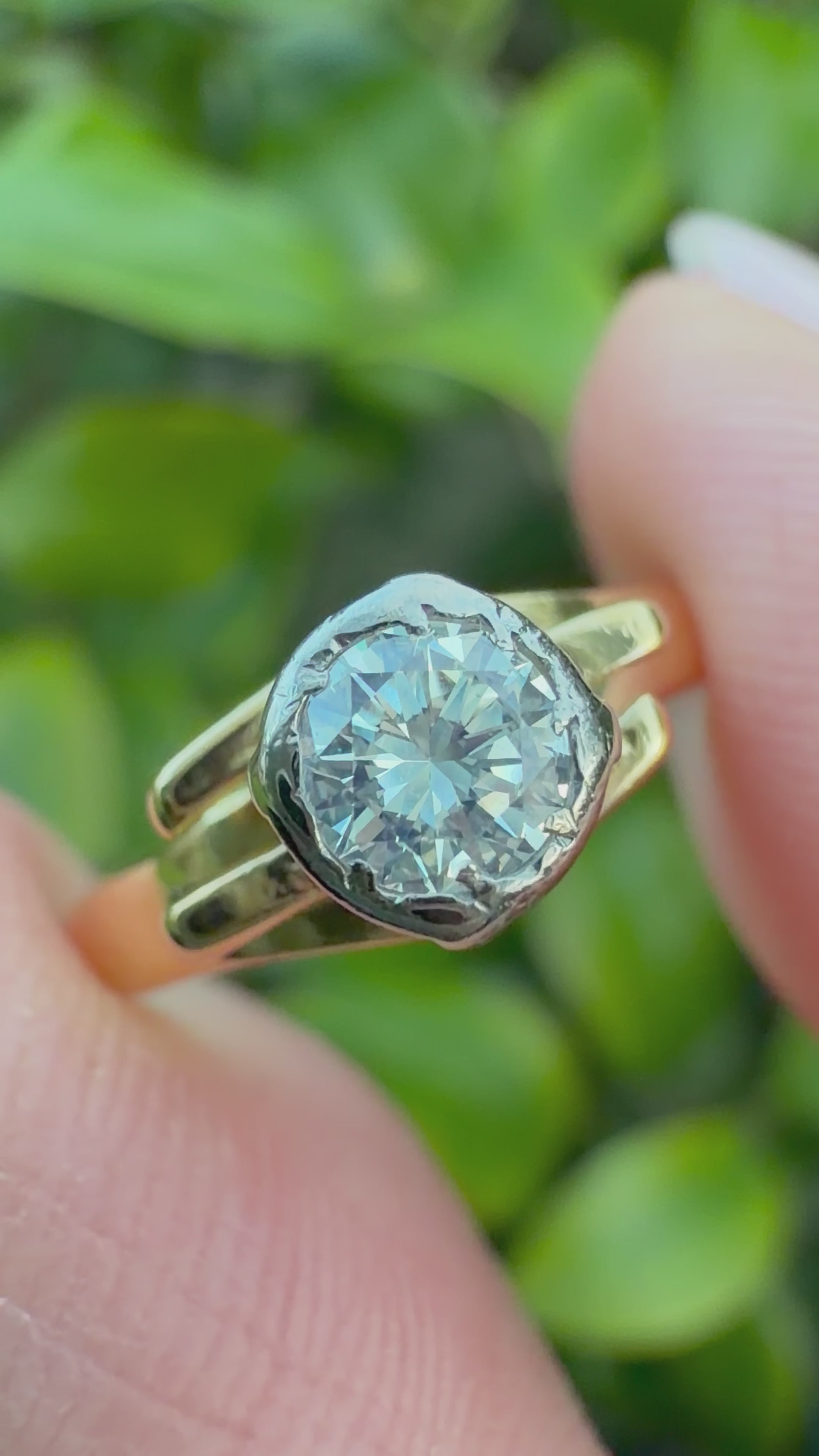 18k yellow and white gold 0.25ct natural round brilliant cut diamond solitaire ring certified