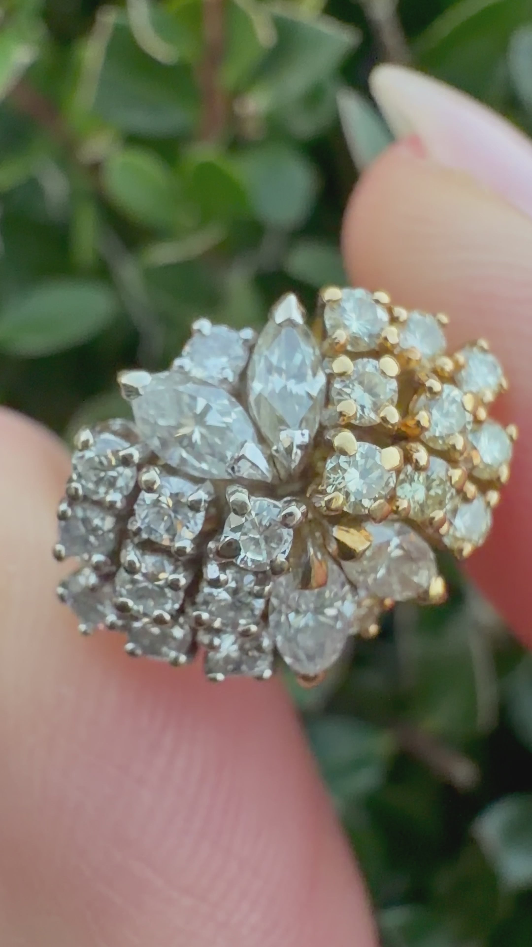 This exquisite piece of jewelry features a stunning arrangement of twenty-four natural diamonds, expertly cut in both round brilliant and marquise shapes. The round brilliant cut diamonds offer exceptional sparkle and fire, while the marquise cut diamonds add a touch of elegance and sophistication with their elongated, tapered shape. The combination of these two cuts creates a visually dynamic and captivating design, showcasing the inherent beauty and brilliance of these precious stones.