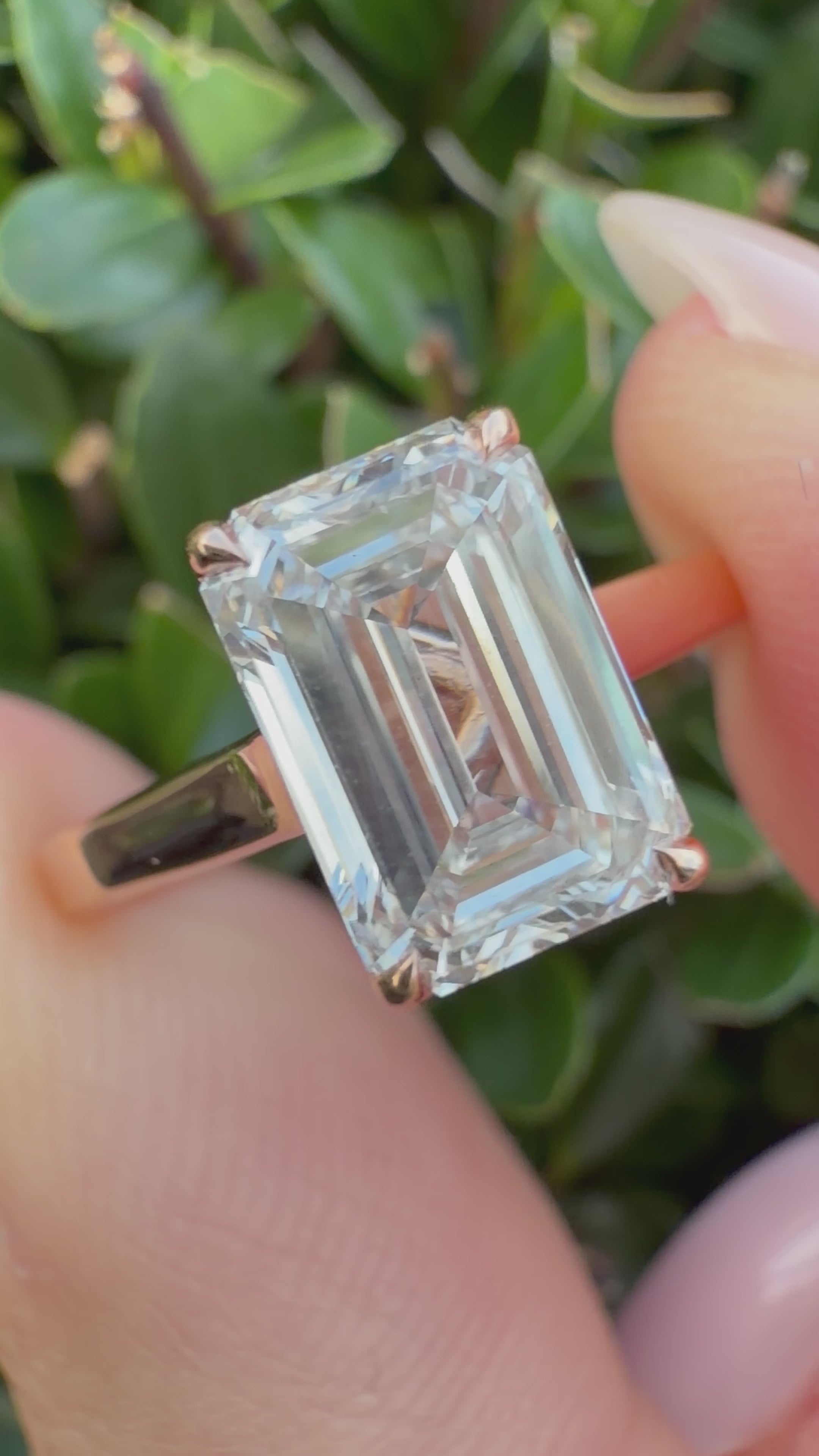 3.02ct emerald cut lab grown diamond solitaire ring Igi certified set in 9k rose gold.
