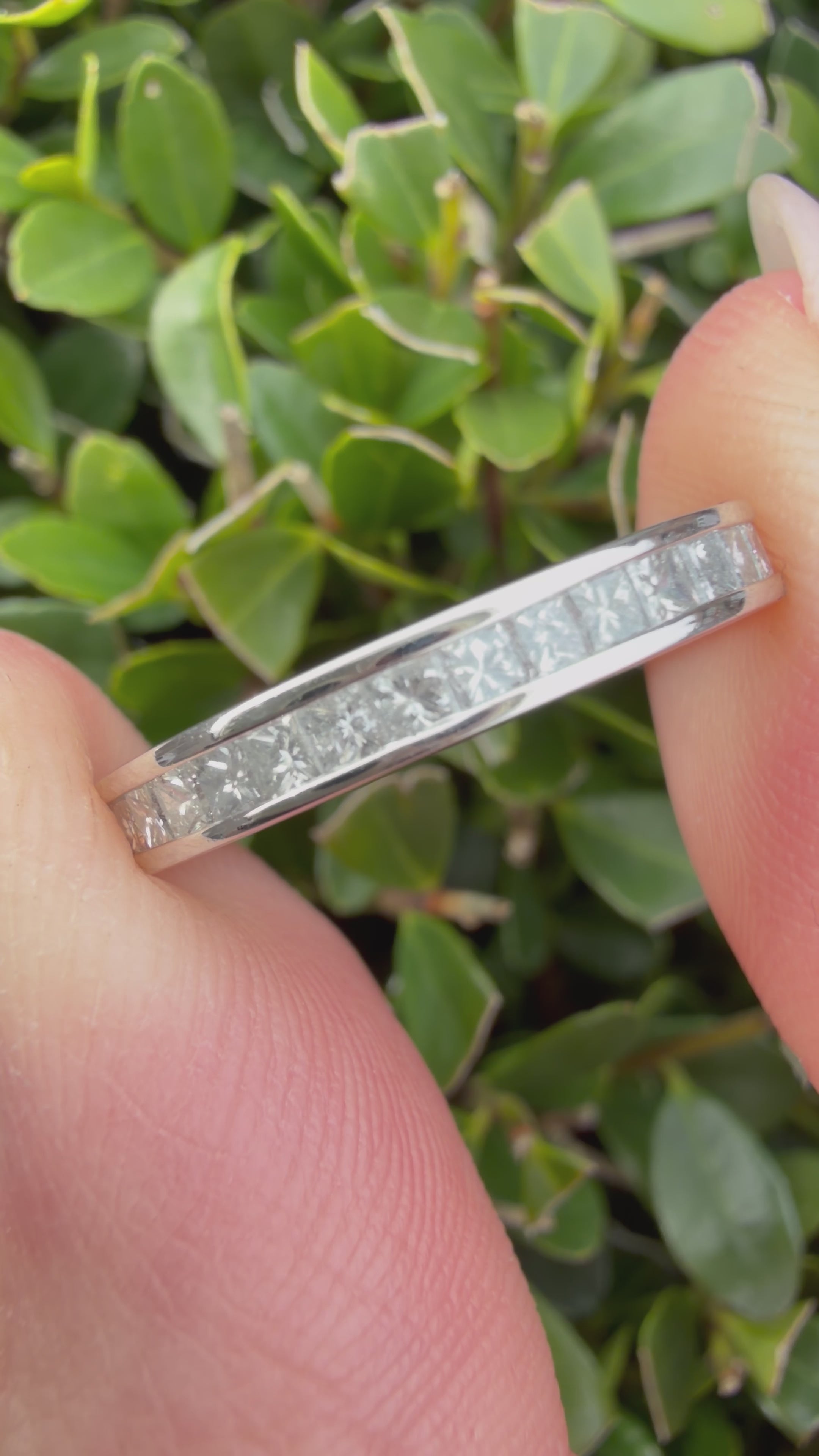 9k White Gold 1.20ct natural Princess Cut diamond full eternity ring certified