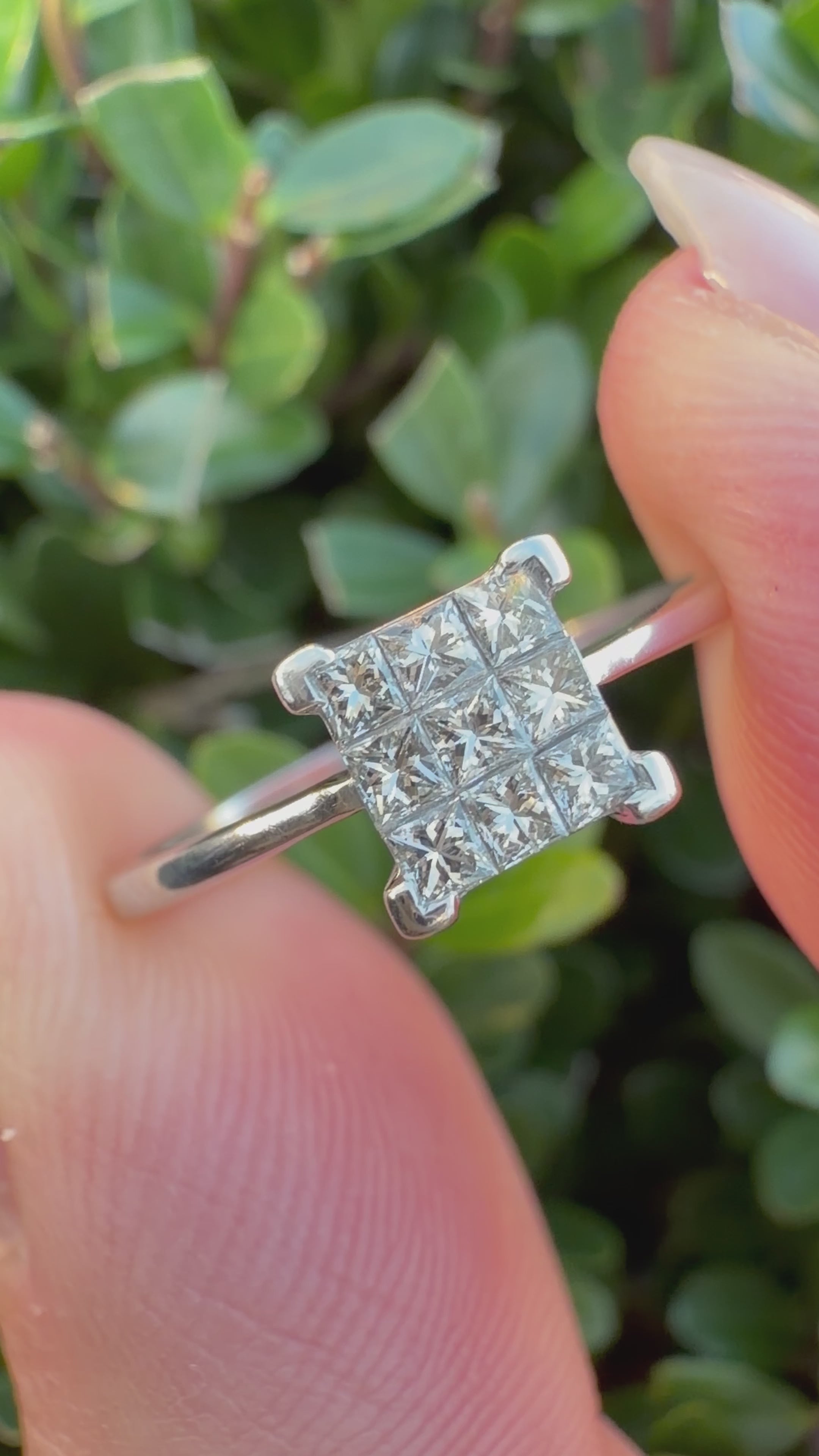 9k White Gold 0.25ct Natural Princess Cut Diamond Cluster Ring certified