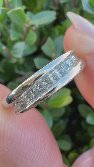 9k white gold 0.25ct natural princess cut diamond half eternity ring certified