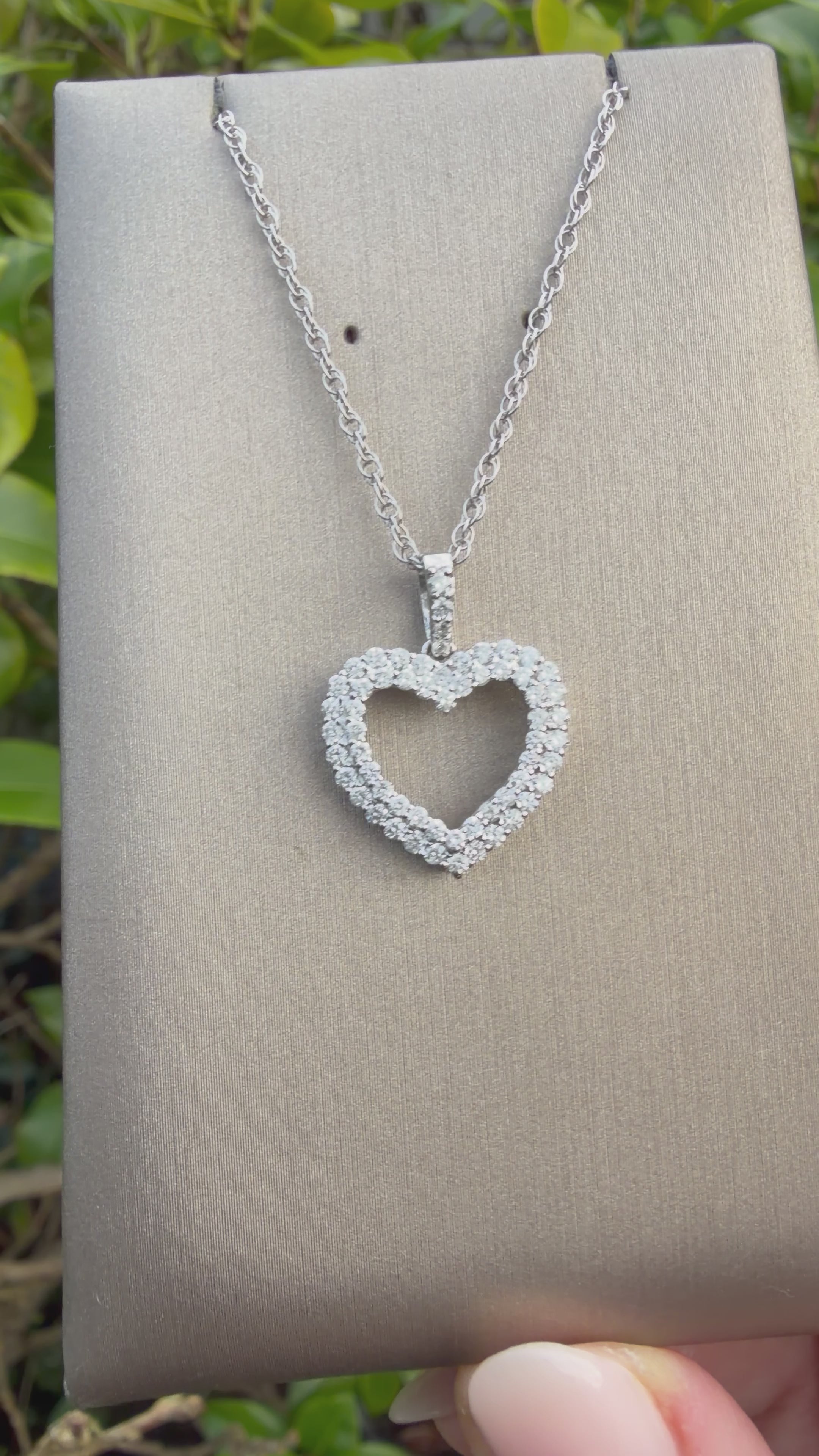 9K white gold 1.00ct natural round cut diamond heart pendant and chain set certified