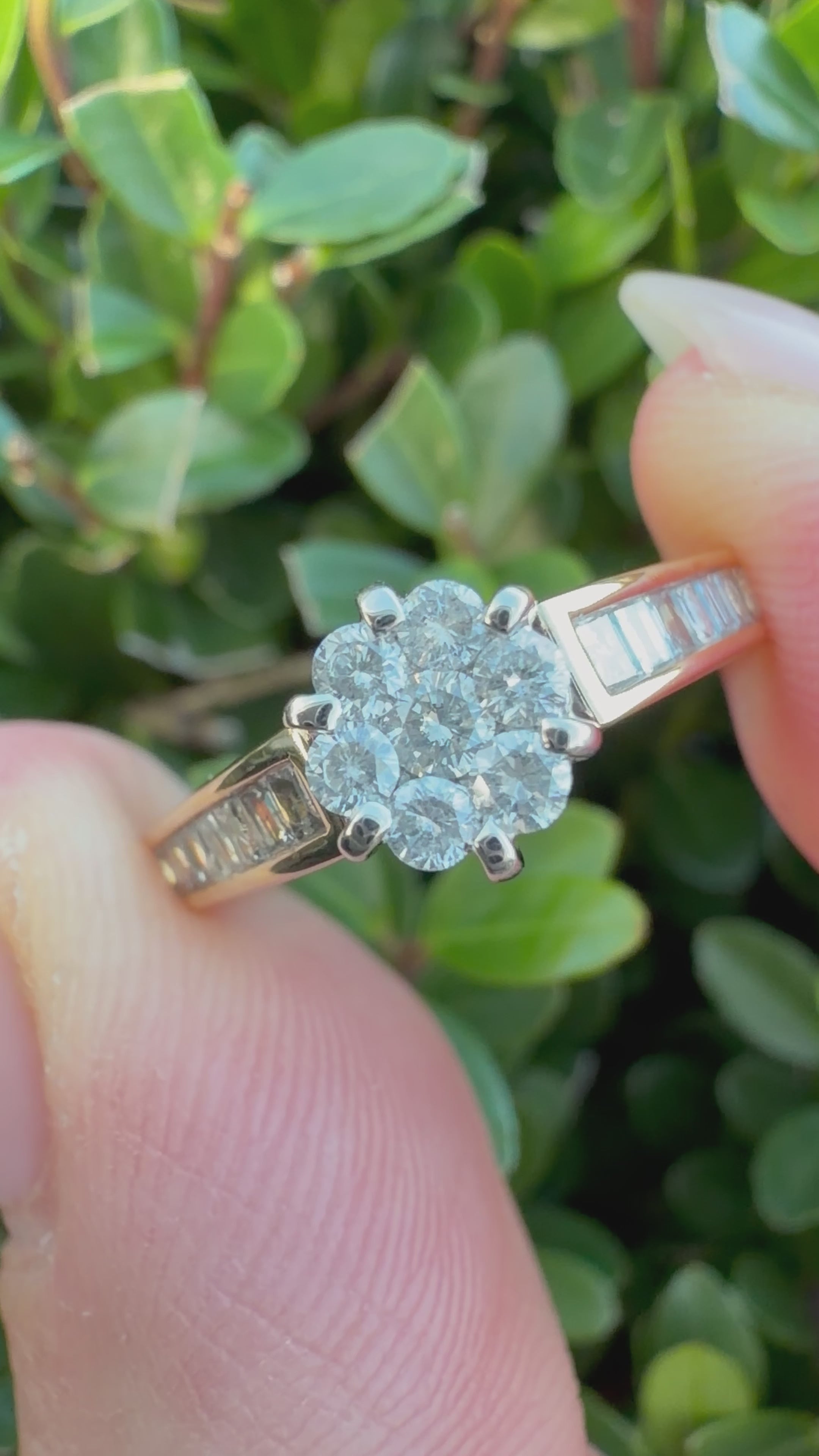 9k yellow and white gold 0.50ct natural diamond cluster ring certified