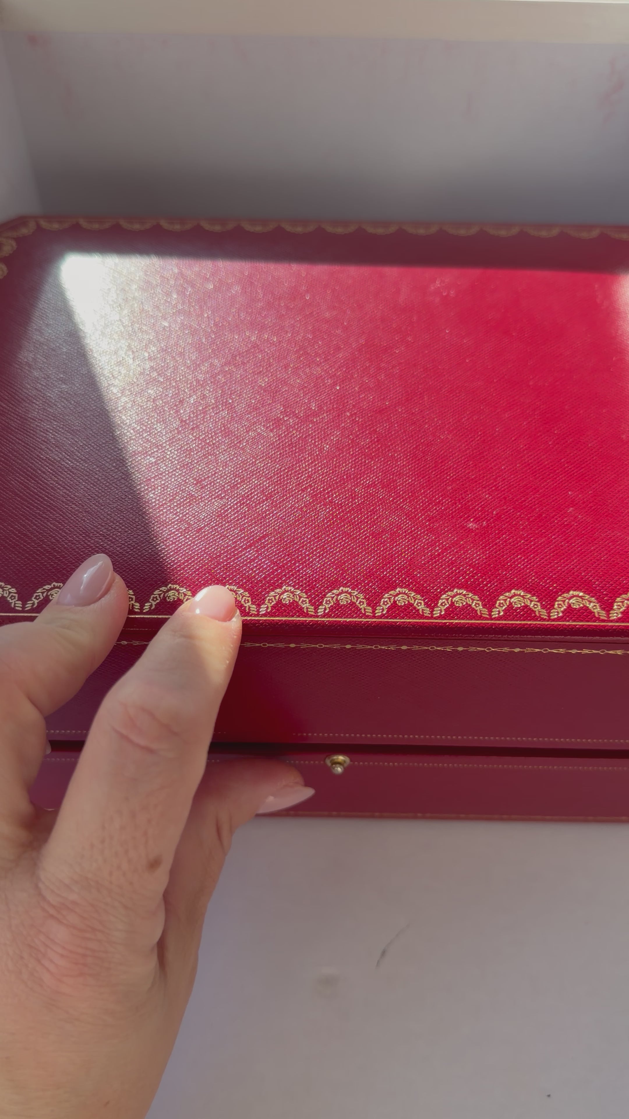 This Cartier de santos skeleton timepiece comes complete with its original box, Cartier manual booklets, jewellery loupe, and a spare factory Cartier blue leather strap