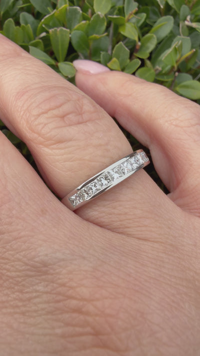 Platinum 1.00ct Natural Diamond Princess Cut Half Eternity Ring – Certified